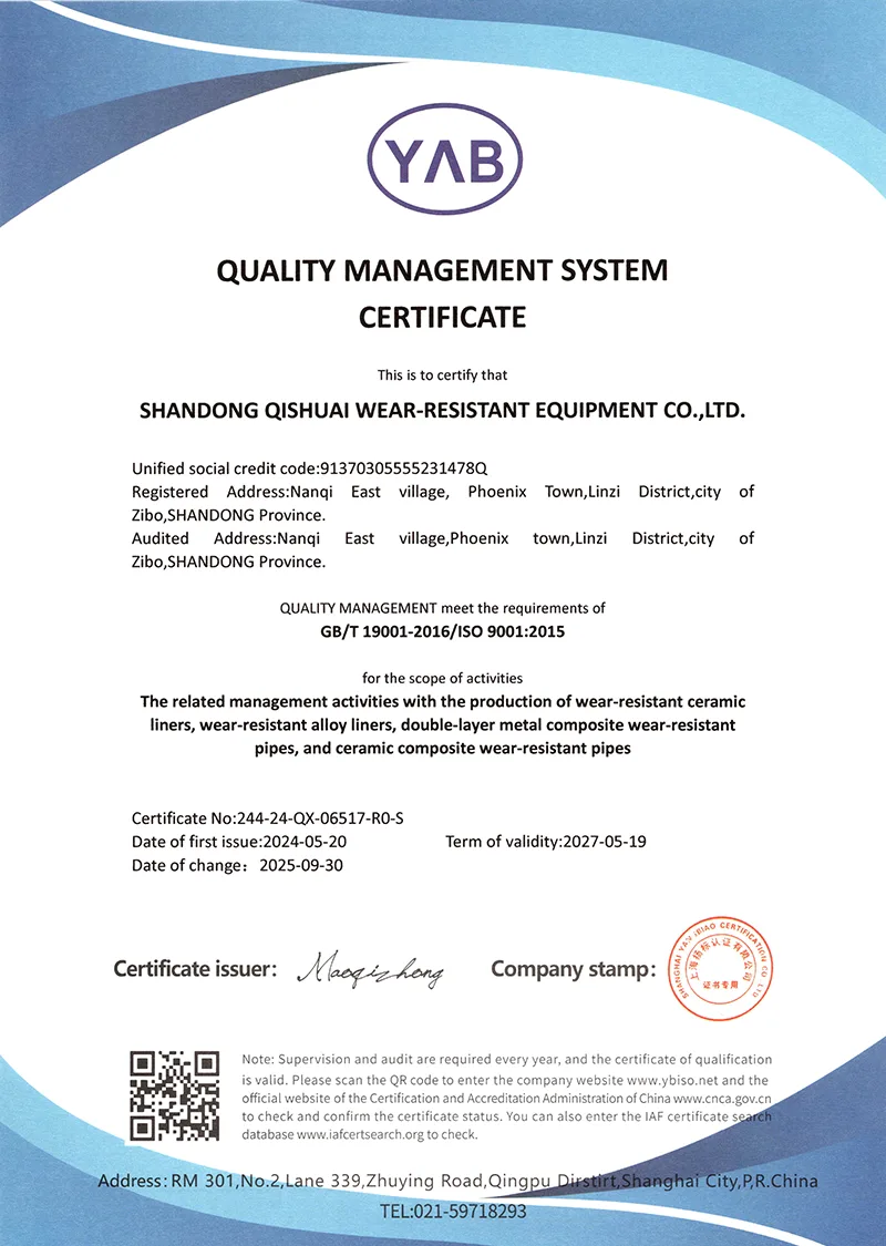 علاوة على ذلك، فإننا نعمل باستمرار على تحسين مستوانا ونقوم بالابتكار بنشاط. قامت الشركة بتطوير سلسلة من المواد والتقنيات المقاومة للتآكل مع حقوق الملكية الفكرية، وقد حصلت على تقييمات جيدة من المستخدمين وحصلت أيضًا على عوائد غنية. نحن نلتزم دائمًا بمفهوم التصميم المتمثل في مقاومة التآكل العالية وعمر الخدمة الطويل. نختار أولاً مواد عالية الأداء مثل سبائك كربيد الكروم وسيراميك الألومينا عالي الكثافة. مبادئ التصميم: مطابقة ظروف العمل والأداء العالي والسلامة والموثوقية. إذا كانت لديك مشكلة عالمية لا يستطيع كروب حلها، فتفضل بزيارة قيشواي!