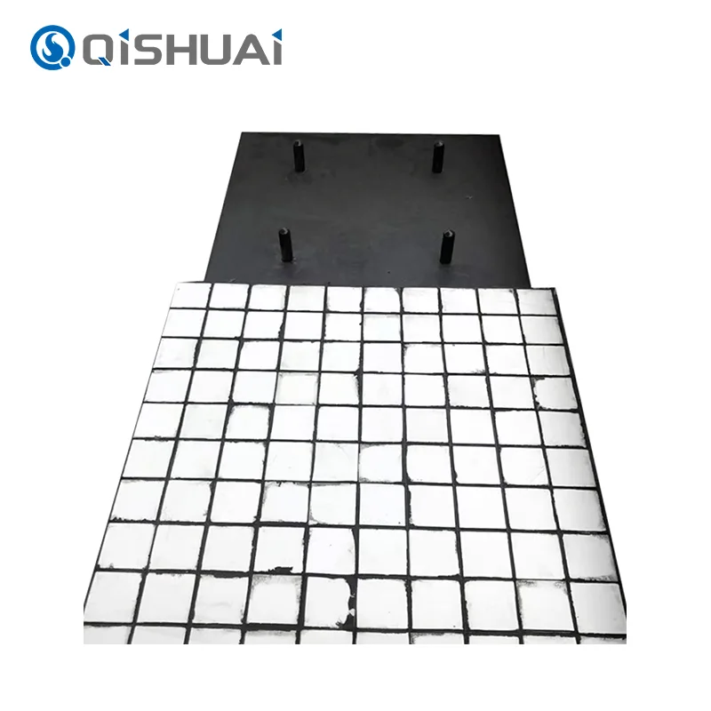 من خلال الفلكنة الحرارية، يتم ربط صفائح السيراميك والمطاط والفولاذ بإحكام لتكوين هيكل متكامل قوي. يتميز كل بلاط سيراميك بمسامير تخترق اللوحة الفولاذية السفلية ويتم لحامها بشكل آمن، مما يضمن عدم حدوث انفصال للسيراميك أثناء الاستخدام.